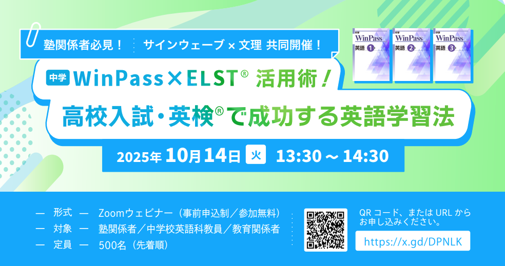 【10月14日(火)開催!】中学WinPass×ELST®活用術!高校入試・英検®で成功する英語学習法